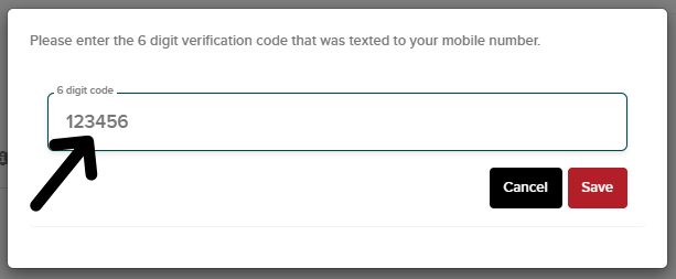You will receive a 6-digit verification code at the phone number associated with your account. Enter the code and click Save.